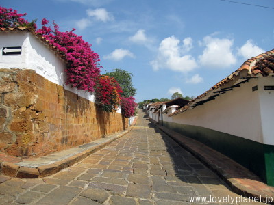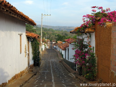 《バリチャラの町並み ①》 バリチャラは、1km四方ほどの小さな町ですが、碁盤状に整備された石畳の舗装道路の両側に平屋建ての美しい家々が続く長閑な田舎町です。その美しさは、しばしば、コロンビアで最も可愛らしい町(The Prettiest Town in Colombia)と評されるほどです。 |