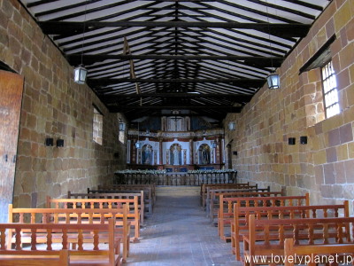 《バリチャラのサンタ・バーバラ教会 ②》 正面部分を除き1990年代に建て直されたとのことで、内部は非常に質素ではあるものの小綺麗な雰囲気に満ちています。 |