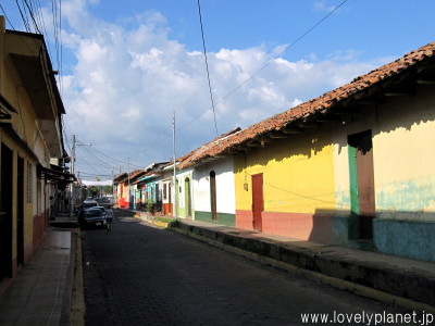《グラナダ中心部の路地》 冒頭でご紹介したレオンの街角に似ていますが、ここはレオンから約150km、首都マナグアからだと約45km南東に位置する、国内で最も美しいと言われる古都 Granada です。 |
