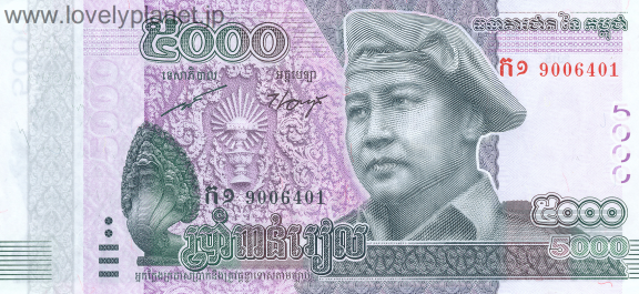 カンボジアの通貨は、カンボジア・リエル(Cambodia Riel、通貨コードKHR)です。補助単位としてセン(Sen)及び カク(Kak)があります(100セン=10カク=1リエル)が、現在は使用されていません。
