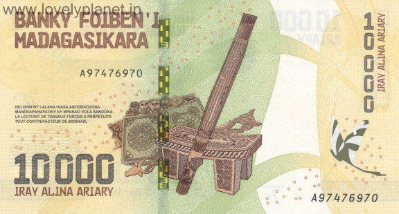 マダガスカルでは、2019年現在、100、200、500、1,000、2,000、5,000、10,000 及び 20,000アリアリの8種類の紙幣が流通しています。