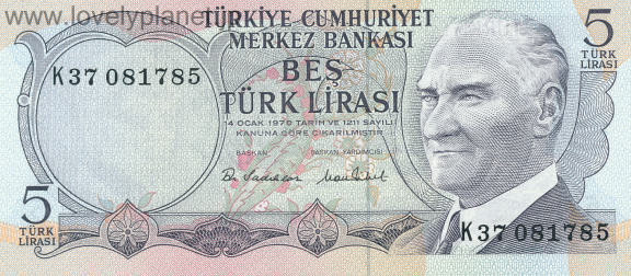 2005年末までは、(旧)リラ(Turkish Lira、通貨記号「TL」、通貨コードTRL、補助単位 クルシュ(100クルシュ=1リラ))を採用していましたが、高いインフレ率への対応のため、2005年1月1日に新リラ(Yeni