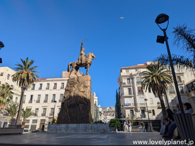《アルジェ中心部 ⑦》 エミール・アブデルカデル広場(Statue de l'Émir Abdelkader)には、19世紀にフランスの植民地支配に対するアルジェリアの抵抗運動を率いた国民的英雄であるエミール・アブデルカデルの像が建っています。 |