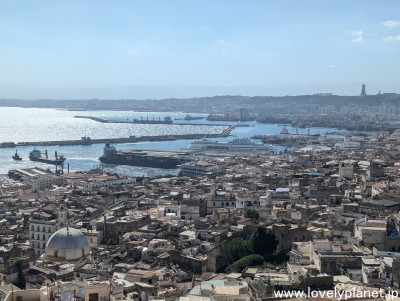 《アルジェ中心部 ⑭》 殉教者記念碑のある丘から東方向(中心部とは逆方向)を見た様子です。 右奥には、アルジェリア最大のアル・ジャザイール・モスク(Djamaa el Djazaïr 又は Great Mosque of Algeria)にある世界で最も高い265mのミナレットが見えます。 15kmほど先にはアルジェ国際空港があります。 |