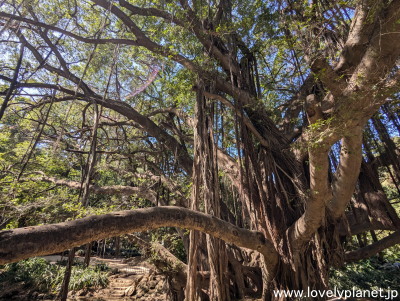 《アルジェのハンマ庭園 ⑤》 この木は「ターザンの木(Arbre de Tarzan)」と呼ばれ、1932年制作の実写版映画「ターザン」の撮影地として、この公園では最も人気のある場所の一つです。 |