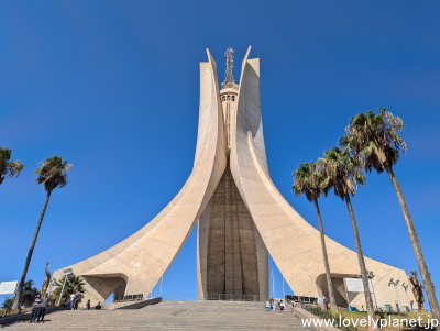 《アルジェの殉教者記念碑》 庭園から地下鉄の駅のある通りを挟んだ丘の上には、アルジェリアの独立戦争で亡くなった人々を追悼するために建てられた殉教者記念碑(Martyrs Memorial)が建っています 1982年に完成した高さ92メートルのコンクリート製のモニュメントで、アルジェ市内から広く見渡すことができます。 |