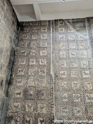 《ジェミラ遺跡 ⑧》【世界遺産】 これらのモザイク画は4世紀後半から5世紀にかけてのものとされています。 |