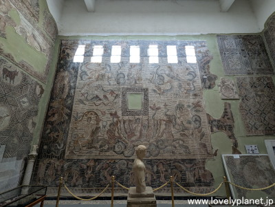《ジェミラ遺跡 ②》【世界遺産】 入場するとまず博物館があります。 この博物館には、この遺跡から発掘されたローマ帝国時代の多数のモザイク画が展示されています。 |