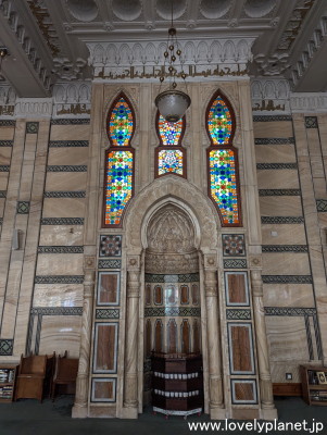 《コンスタンティン ⑧》 鮮やかなステンドグラスの窓が特徴的なミフラーブ(メッカの方向を示す壁龕)の周りは、豪華な大理石で飾られています。 |
