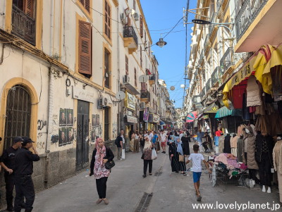 《アルジェ中心部 ⑲》 マーケットは空いていましたが、昼間よりも過ごしやすいからか街なかには多くの人が出歩いていました。 |