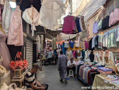 《コンスタンティン ㉗》 この辺りでは女性用の服などが売られていますが、ほとんど商売っ気はなく、店員の皆さんは携帯での作業に夢中です。 |