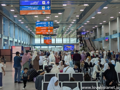 《コンスタンティン空港 ②》 この時はちょうどメッカへの巡礼団のグループのフライトと出発時間が近かったため、出発ロビーはそれらの方々で大混雑でした。 |