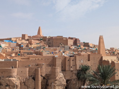 《ガルダイア ㉓》【世界遺産】 クサールの周囲にはヤシの木が沢山生えていて、ここがオアシス都市であることがよくわかります。 |