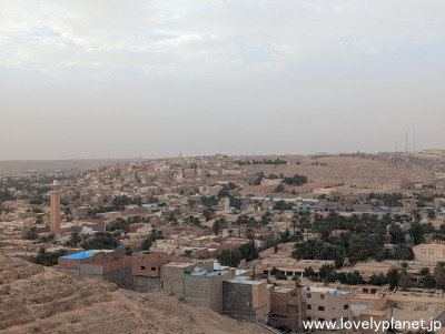 《ガルダイア ①》【世界遺産】 Ghardaiaの空港へは23時過ぎに到着し、市街地中心部のホテルまでは旅行会社に手配してもらっていた車で移動して、24時過ぎに無事にチェックインしました。 やっぱりツアーは便利ですね。 翌日、朝起きると、ホテルの部屋のベランダからは美しい景色が広がっていました。 こちらは西方向、ガルダイア中心部の方角です。 |