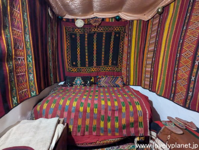 《ガルダイア ⑧》【世界遺産】 ガイドの案内で、あるお宅の内部を拝見させて頂きました。 とてもカラフルでチャーミングです。 こちらは、東の隣国リビアのガダーミスで見せて頂いた家の内装と雰囲気が少し似ています。 |