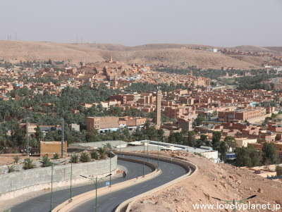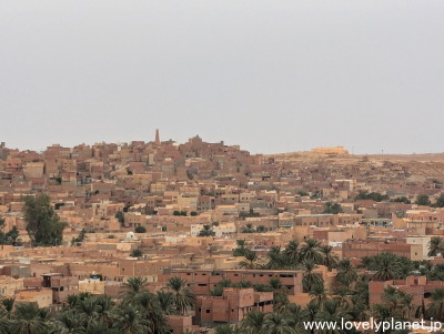 《ガルダイア ③》【世界遺産】 南方向です。 「ムザブの谷」は、首都アルジェの南方約450kmに位置し、それぞれ丘の頂上に建てられたモスクを中心に麓に向かって町が広がっています。 1982年にユネスコの世界遺産に登録されました。 なお、このページでは「ムサブの谷」を含めたこのエリア全体を、一番大きな街でありこの辺り一帯をも指す「ガルダイア」と呼ぶことにさせて頂きます(今回はガルダイアのクサールはマーケットしか訪れなかったため)。 |