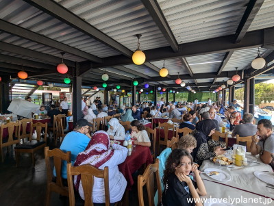《ある日の昼食》 この日の昼食は地元のファーストフード店で好きなものを頼みました。 特に好きなものはありませんでしたが、世界中どこでもお馴染みで、この地域でもポピュラーなドネルケバブプレートを食べました。 写真では大きさは判りづらいかもしれませんが、これで普通に2人前はあって値段は450円ほどです。 普通に美味しかったです。 |