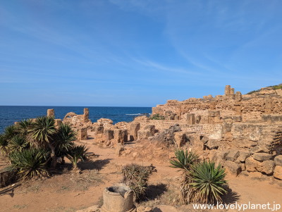 《ティパサ遺跡 ③》【世界遺産】 アラビア語で「荒廃した都市」を意味する名前の通り、6世紀に放棄されて以降、廃墟となっていましたが、1856年になってフランスの考古学者によりやっと発掘されたそうです。 |