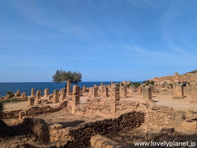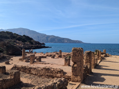 《ティパサ遺跡 ⑤》【世界遺産】 そんな訳で、ジェミラやティムガッドに比べるとインパクトに欠ける感じもしますが、ローマ遺跡にしては珍しく海に面しているということとアルジェから約70kmという好立地もあって、人気の観光スポットとなっています。 |