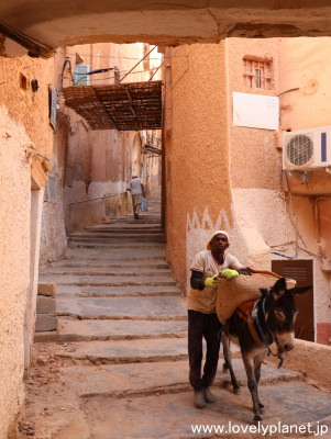 《ガルダイア ⑦》【世界遺産】 路地は複雑に入り組んでいますが、多くの場所から頂上のモスクが見えるので、あまり迷うことはありません(というか、クサールの散策には必ず各クサール認定のガイド(ツアーガイドとは別)が必要なので、彼に着いていくだけなのですが)。 |