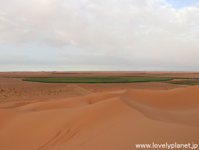 《サハラ砂漠観光 ③》 近く(と言っても2kmくらい先)には灌漑施設がありました。 ガイドに訊いたところ、小麦を栽培しているとのことでした。 |