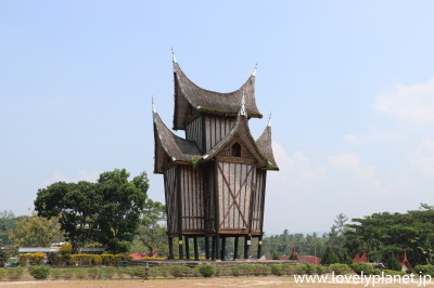 《ブキティンギ近郊ツアー ⑤》 オプションのラフレシアツアーに2時間くらい費やした後は、本題のミナンカバウ・ツアーです。 まずは恒例のルマ・ガダンです。随分立派な建物ですが特に名前は無いようです。 |