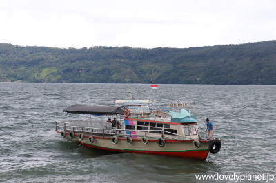 《トバ湖 ③》 サモシール島とパラパットを結ぶボートは1時間に1本程度出ているのでとても便利で、多くの観光客(ここも欧米人のバックパッカーが非常に多い)はサモシール島に宿泊してのんびり過ごす傾向があるそうです。 |