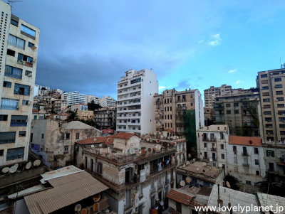 《アルジェ中心部 ㉑》 ホテルの部屋から見た中心部の裏路地の様子です。 高台の上の方までびっしりと建物で埋め尽くされています。 |