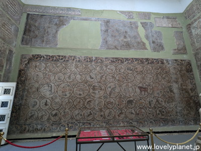 《ジェミラ遺跡 ②》【世界遺産】 入場するとまず博物館があります。 この博物館には、この遺跡から発掘されたローマ帝国時代の多数のモザイク画が展示されています。 |