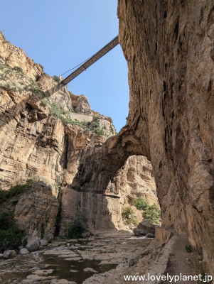 《コンスタンティン ⑭》 下から見るとただの歩行者専用の吊り橋のようにも見えますが、高さ175mもあるので小さく見えるものの、実は長さ168mもある立派な車道です。 橋の下には自然に形成された岩のアーチもあります。 |