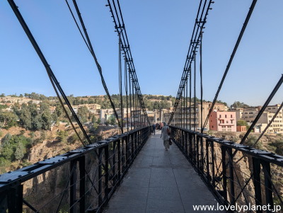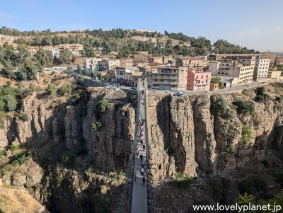 《コンスタンティン ㉜》 旧市街中心部の狭い路地を抜けると橋に出ました。 コンスタンティーヌに架かる橋の1つメラー・スリマーヌ橋(Mellah Slimane Bridge)です。 |