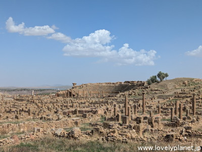 《ティムガッド遺跡 ⑤》【世界遺産】 奥に見えるのは円形劇場です。 |
