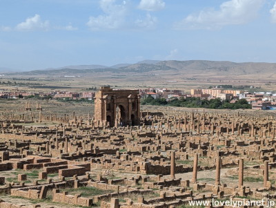 《ティムガッド遺跡 ①》【世界遺産】 翌日は、コンスタンティンの約120km南にあるティムガッド(Timgad)遺跡を訪問しました。 西暦100年頃にトラヤヌス帝によって建設されたこの都市は、ローマ帝国時代の都市計画の優れた例として知られています。 |
