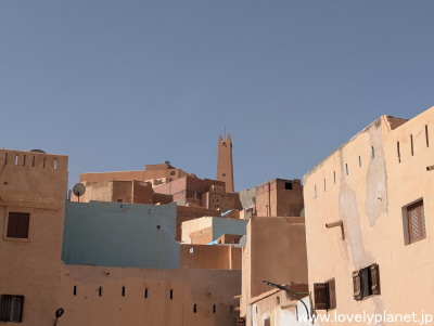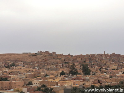 《ガルダイア ③》【世界遺産】 南方向です。 「ムザブの谷」は、首都アルジェの南方約450kmに位置し、それぞれ丘の頂上に建てられたモスクを中心に麓に向かって町が広がっています。 1982年にユネスコの世界遺産に登録されました。 なお、このページでは「ムサブの谷」を含めたこのエリア全体を、一番大きな街でありこの辺り一帯をも指す「ガルダイア」と呼ぶことにさせて頂きます(今回はガルダイアのクサールはマーケットしか訪れなかったため)。 |