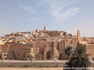 《ガルダイア ㉓》【世界遺産】 クサールの周囲にはヤシの木が沢山生えていて、ここがオアシス都市であることがよくわかります。 |