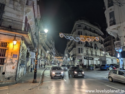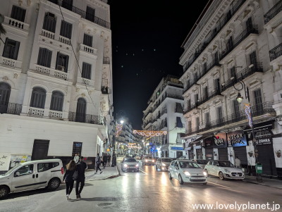 《アルジェ中心部 ⑲》 マーケットは空いていましたが、昼間よりも過ごしやすいからか街なかには多くの人が出歩いていました。 |