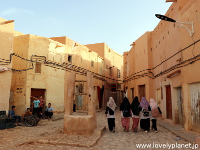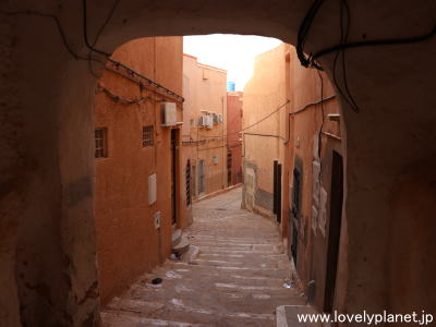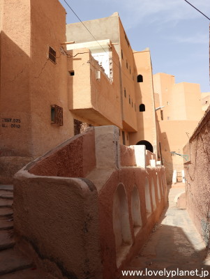 《ガルダイア ⑦》【世界遺産】 路地は複雑に入り組んでいますが、多くの場所から頂上のモスクが見えるので、あまり迷うことはありません(というか、クサールの散策には必ず各クサール認定のガイド(ツアーガイドとは別)が必要なので、彼に着いていくだけなのですが)。 |