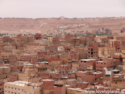 《ガルダイア ㉟》 ブーヌーラの観光を終えると、南に2km(車で5分)ほどの丘の上にあるタフィラルト(Tafilelt)のクサールを訪れました。 クサールとはいうもののここは伝統的な集落ではなく、国策により新設された新しい街です。 |