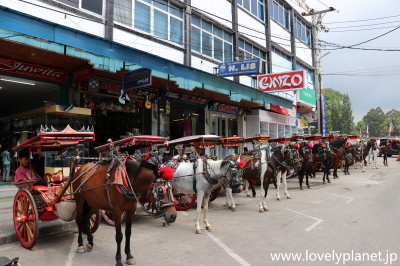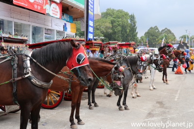 《ブキティンギ ③》 中心部にはタクシーやバイクタクシーも走っていますが、馬車タクシーも待機しています。 |