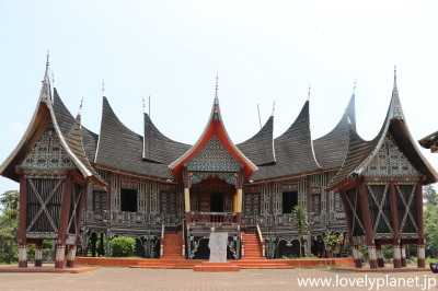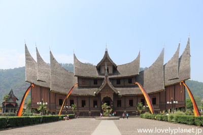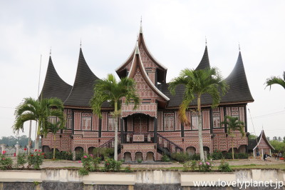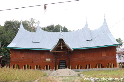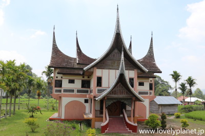 《ブキティンギ近郊ツアー ⑤》 オプションのラフレシアツアーに2時間くらい費やした後は、本題のミナンカバウ・ツアーです。 まずは恒例のルマ・ガダンです。随分立派な建物ですが特に名前は無いようです。 |