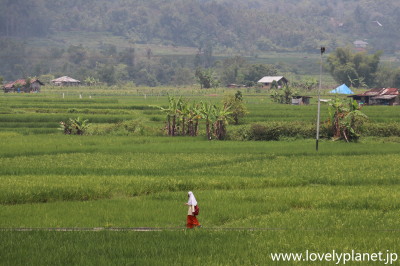 《ブキティンギ ⑨》 丘の上と言っても、宿が渓谷の底のような場所に位置しているので、登った先にも立派な田園地帯が開けています。 |
