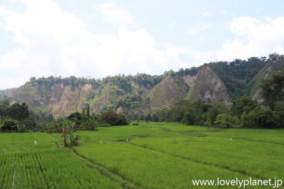 《ブキティンギ ⑤》 今回は、中心部から急な坂を20分ほど下ったところにあり、Booking.comの評価が高かった「Padi Ecolodge」という宿に泊まりました。 美しい棚田とシアノック渓谷(Ngarai Sianok)の壮大な崖に囲まれた静かな環境に位置しています。 |