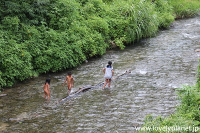 《ブキッ・ラワン ⑩》 一方で、未就学児なのかわかりませんが、川では結構な数の子供たちが水遊びに興じていました。 |
