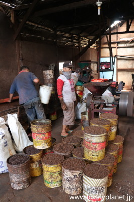 《ブキティンギ近郊ツアー ⑥》 Tabek Patahという村ではコーヒーの精製所も訪れました。 |