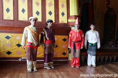 《ブキティンギ近郊ツアー ⑪》 館内は博物館としても機能していて、ミナンカバウ族の伝統的な衣装を着たマネキンも展示されています。 |