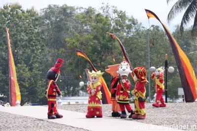 《ブキティンギ近郊ツアー ⑩》 敷地内には多数のゆるキャラが大きな顔をして屯しています。 |