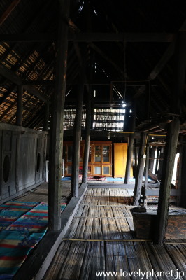 《ブキティンギ近郊ツアー ⑰》 350年以上前に建てられたルマ・ガダンで、釘が1本も使用されていないそうです。 とても貴重な文化財ですが、今でも結婚式や葬式などの式典に使われているとのことです。 |