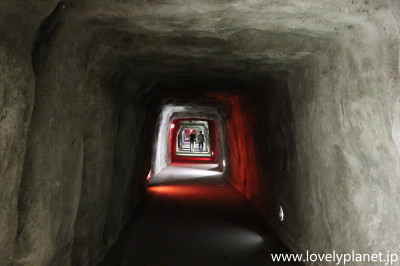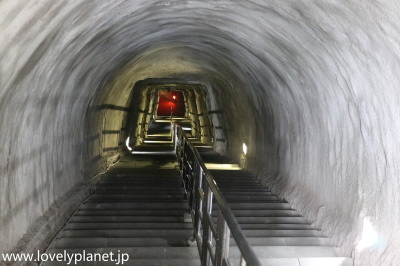 《ブキティンギ ㉚》 全長は約6kmあるそうでアジア最長と言われていますが、そのうち約1.5kmが公開されています。 入口を入ると急な長い階段が奥深くまで続いています(防空壕の入口は他にも2~3箇所ありますが、他は渓谷側になってしまうため、通常はまたこの階段を昇って来ることになります)。 |