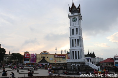 《ブキティンギ ㉜》 悲しい話を聞いた後は、中心部の時計塔に集まる地元の人々とともに平和な夕暮れのひとときを過ごしましました。 |