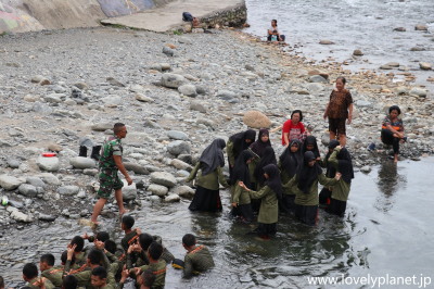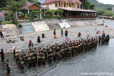 《ブキッ・ラワン ⑪》 少し離れたところでは兵学校の学生のような団体が制服で水に浸かる訓練をしていました。 |